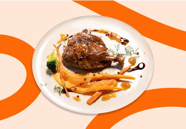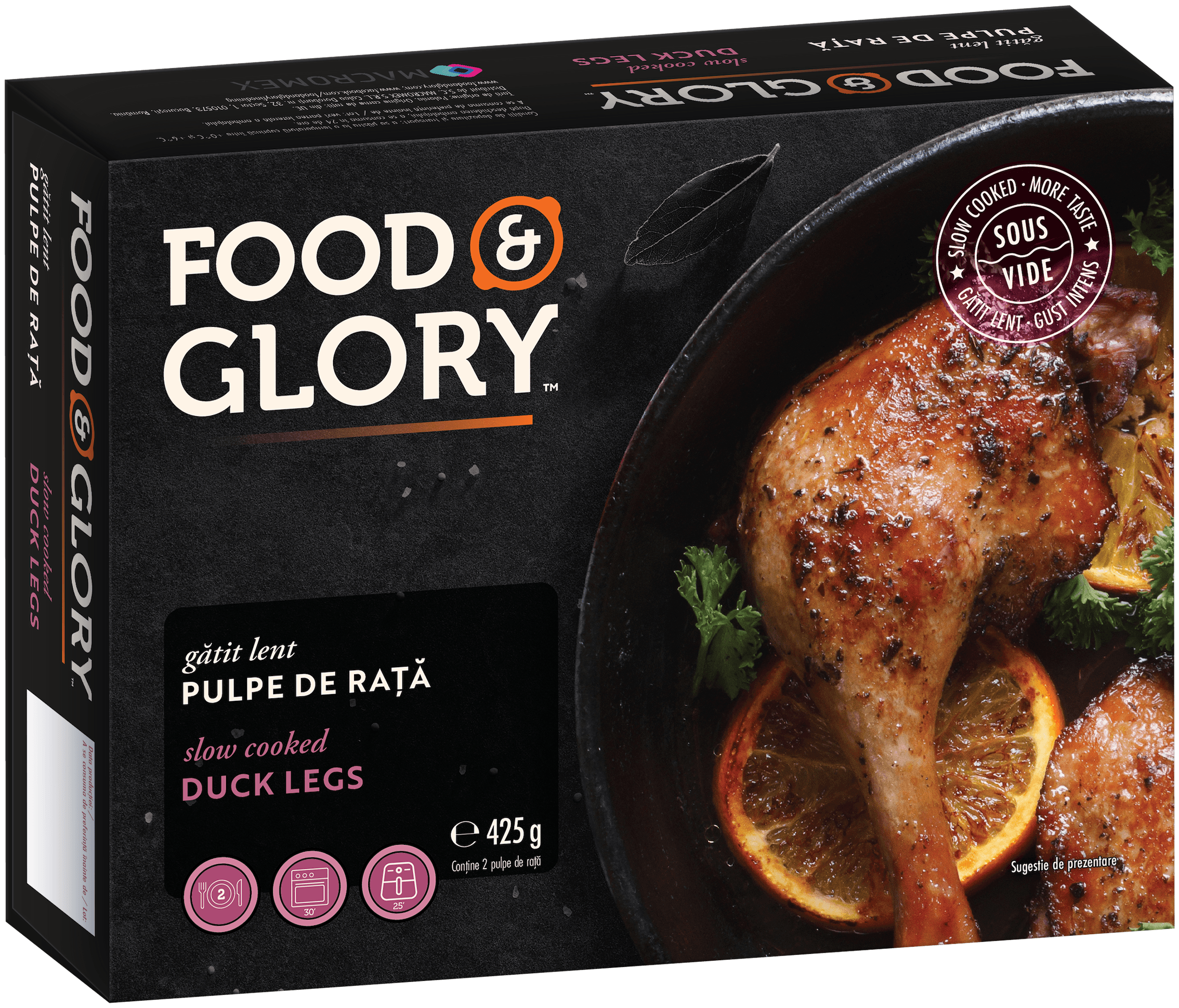 Pulpele de rață pot fi servite ca friptură cu garnitura preferată sau carnea poate fi tăiată și adăugată în wrap, alături de legume feliate. Cantitate recomandată pentru 2 porții. Poftă bună!