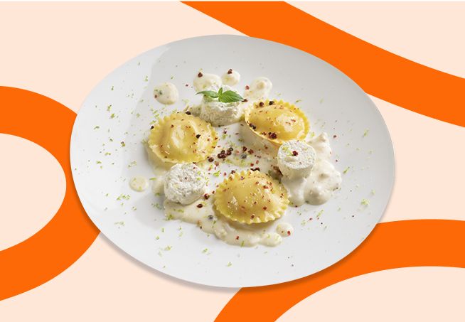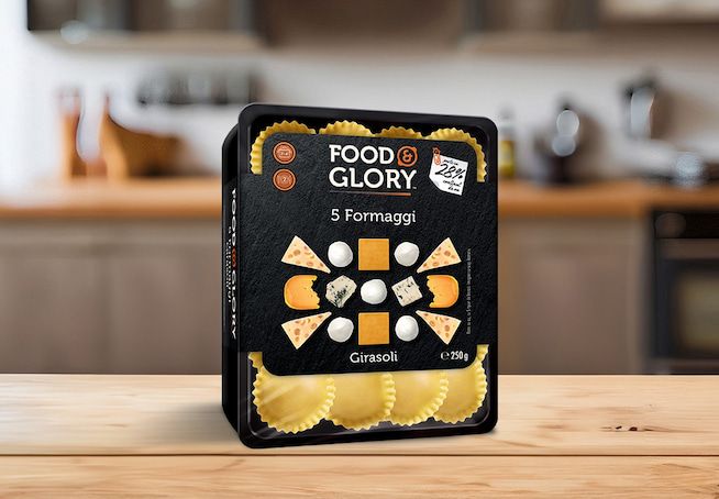 Umplutură (55%): brânză Ricotta 23,7% (zer (LAPTE), smântână (LAPTE), sare, corector de aciditate: acid citric, acid lactic), sos Bechamel (LAPTE semidegresat, făină de GRÂU moale, apă, unt (LAPTE), amidon de porumb, zahăr, sare), smântână (LAPTE), pesmet (făină de GRÂU moale, sare, drojdie), LACTOZĂ, ulei de floarea soarelui, brânză Gorgonzola DOP 5% (LAPTE, sare, fermenți lactici, cheag, mucegai albastru Penicillium Candidum), brânză Gouda 5% (LAPTE, sare, fermenți lactici, cheag), brânză Mozzarella 4% (LAPTE, sare, cheag), zer praf (LAPTE), brânză Emmental 2% (LAPTE, sare, fermenți lactici, cheag), branza Cheddar 2% (LAPTE, sare, fermenți lactici, cheag), sare. Paste (45%): făină de GRÂU moale, OU 28,5%, gris de GRÂU dur, apa. Poate conţine urme de SOIA, MUȘTAR, PESTE, CRUSTACEE și NUCI.